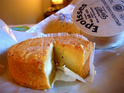 Co to jest: Epoisse jest francuskim serem z mleka krowiego i jest tak ostry, że jest faktycznie zakazany we francuskim transporcie publicznym . Dosłownie, jeśli kupisz tę rzecz we Francji, dostaniesz taksówkę lub wrócisz do domu pieszo. Jest tak legendarnie ostry. Jest nieustannie umazany w brandy, więc jest zarówno śmierdzący, jak i zepsuty. Zabawny fakt: jest to całkowicie nielegalne w USA. Uwolnij ser!
